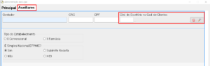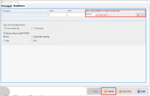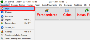 3 – Vincule o Escritório no perfil da sua Loja: Você vai acessar o caminho Cadastros -> Lojas, na barra de opções superior do sistema. Vai selecionar sua loja, entrar na aba Auxiliar e preencher o campo com o código do cliente ESCRITORIO, você pode clicar no botão com a lupa para selecionar ele na lista também, caso considere mais fácil. Feito isso, é só clicar em Salvar.