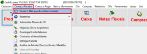 1 – Acessar Contas a Receber: Na barra de opções superior, você vai clicar em Contas a Receber e irá selecionar a primeira opção: Envia E-mail para Escritório Contábil.