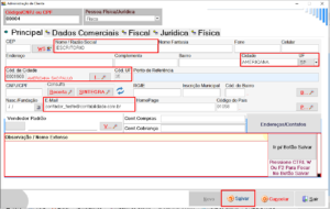 2 – Preencha os Dados do Escritório: Nesse caso basta preencher a Razão Social como “ESCRITORIO”, preencher a cidade, estado, cód da cidade e preencher o e-mail. Feito isso clique em Salvar.