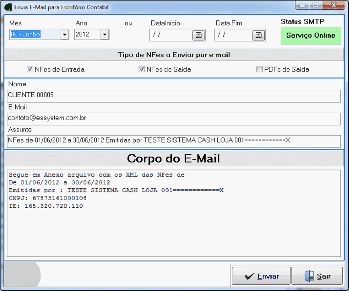 NFes de Entrada – Defina esse campo se você desejar enviar ao seu contador as Notas Fiscais de Entrada de sua Empresa.