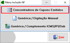 Após finalizar a venda, você vai abrir o módulo de Notas Fiscais e ao clicar para criar uma nova NF-e você irá selecionar a opção “Concentradora de Cupons Emitidos”.
