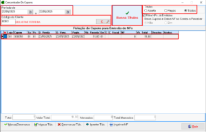 Após selecionar os cupons você vai clicar em “Imprime NF” na parte de baixo da tela.