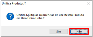 Caso o sistema pergunte se você quer Unificar os produtos semelhantes na mesma linha, o ideal é você selecionar a opção “Não”.