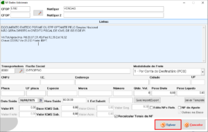 Na próxima tela você pode preencher os dados adicionais, caso seja necessário informar algo na NF, e também destacar alguma transportadora, na maioria dos casos não tem transportadora, porém caso tenha, você pode preencher nos campos abaixo. Após preencher as informações você pode clicar no botão “Salvar”.